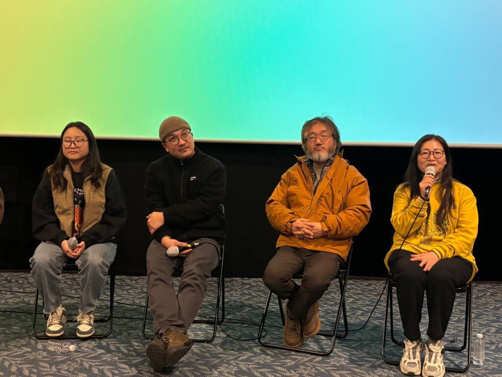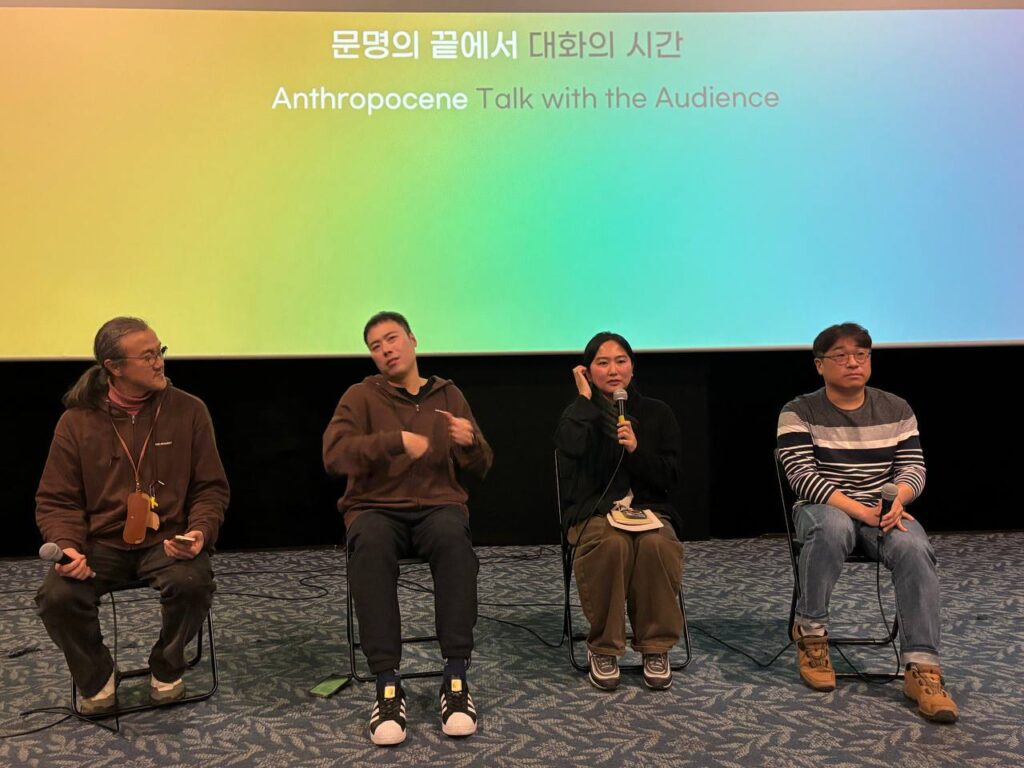 씨앗, 농사 전통을 잇고 싶어 하는 다음 세대 분들을 찍고 싶다고 생각해서 지금 감독은 청년 농부를 찍고 있는데 요즘 AI 데이터센터 때문에 전력 충당을 하기 위해 호남 지역을 거의 송전탑과 선로로 뒤덮는 프로젝트가 추진되고 있다고 합니다. 오늘 오신 관객분들이 관심을 두시고 빠띠에서 ‘초고압 송전탑과 송전선로 반대 서명 운동’을 검색해 서명에 동참해 주시면 좋겠다는 감독의 연대 요청으로 대화의 시간을 마쳤습니다.