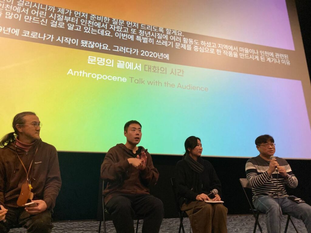 왜 우리는 쓰레기 문제에 주목해야 하는가라는 물음에서 시작했으나 무관심 속에 방치된 쓰레기 문제가 결국에는 노인 등 도시 빈민에게 떠넘겨지는 사회 구조의 모습을 보여주고 있는 <문명의 끝에서> 상영 후 임기웅 감독, 빈곤사회연대 김윤영 활동가와 대화의 시간을 가졌습니다.